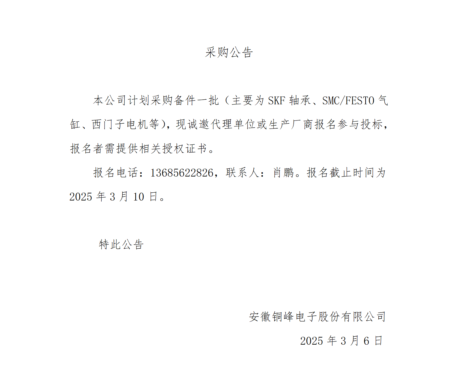 安徽銅峰電子股份有限公司鍍膜分公司設(shè)備搬運(yùn)、移位招標(biāo)公告