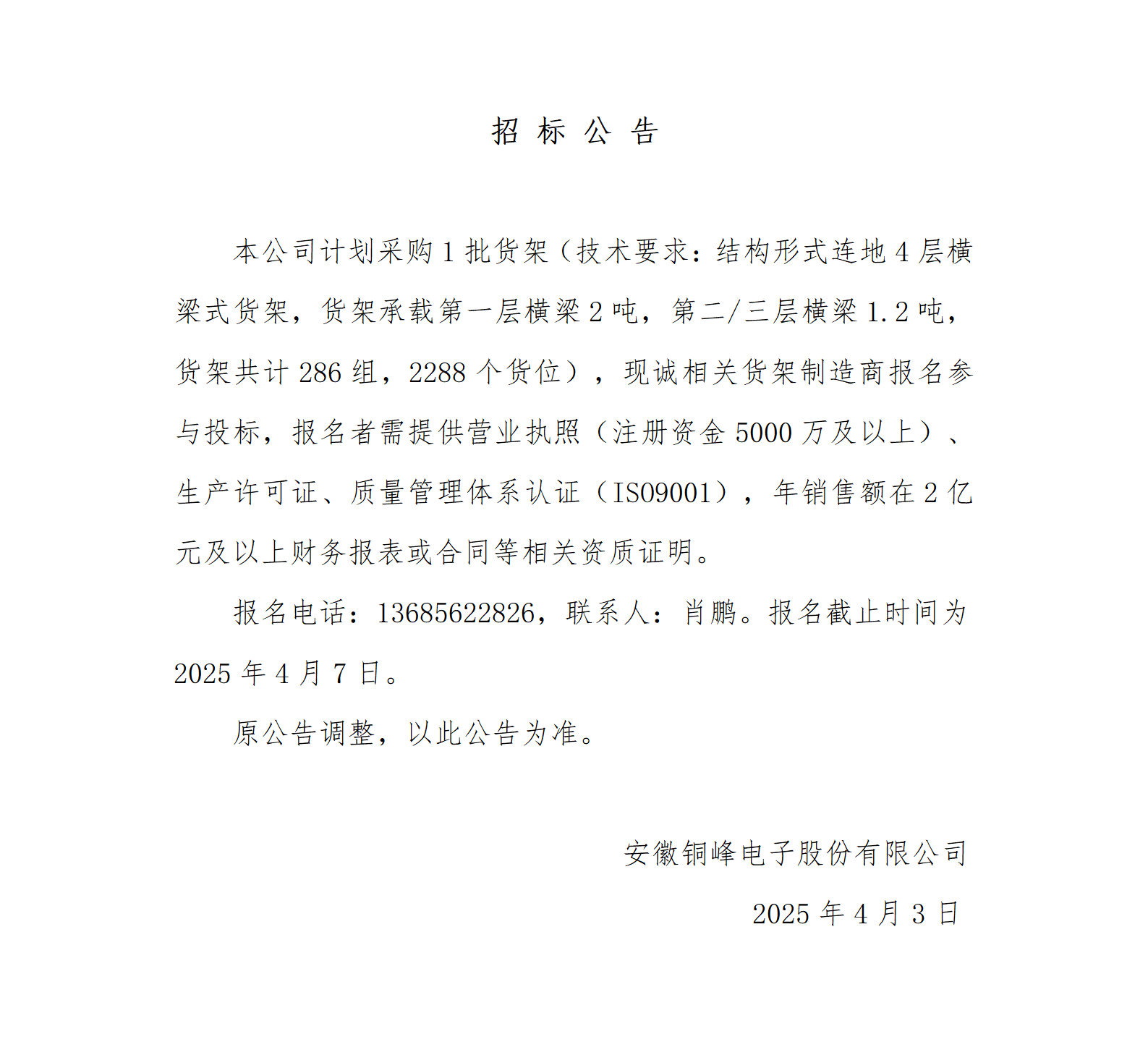 銅峰公司智能倉(cāng)儲(chǔ)立體倉(cāng)庫(kù)貨架采購(gòu)招標(biāo)公告_01