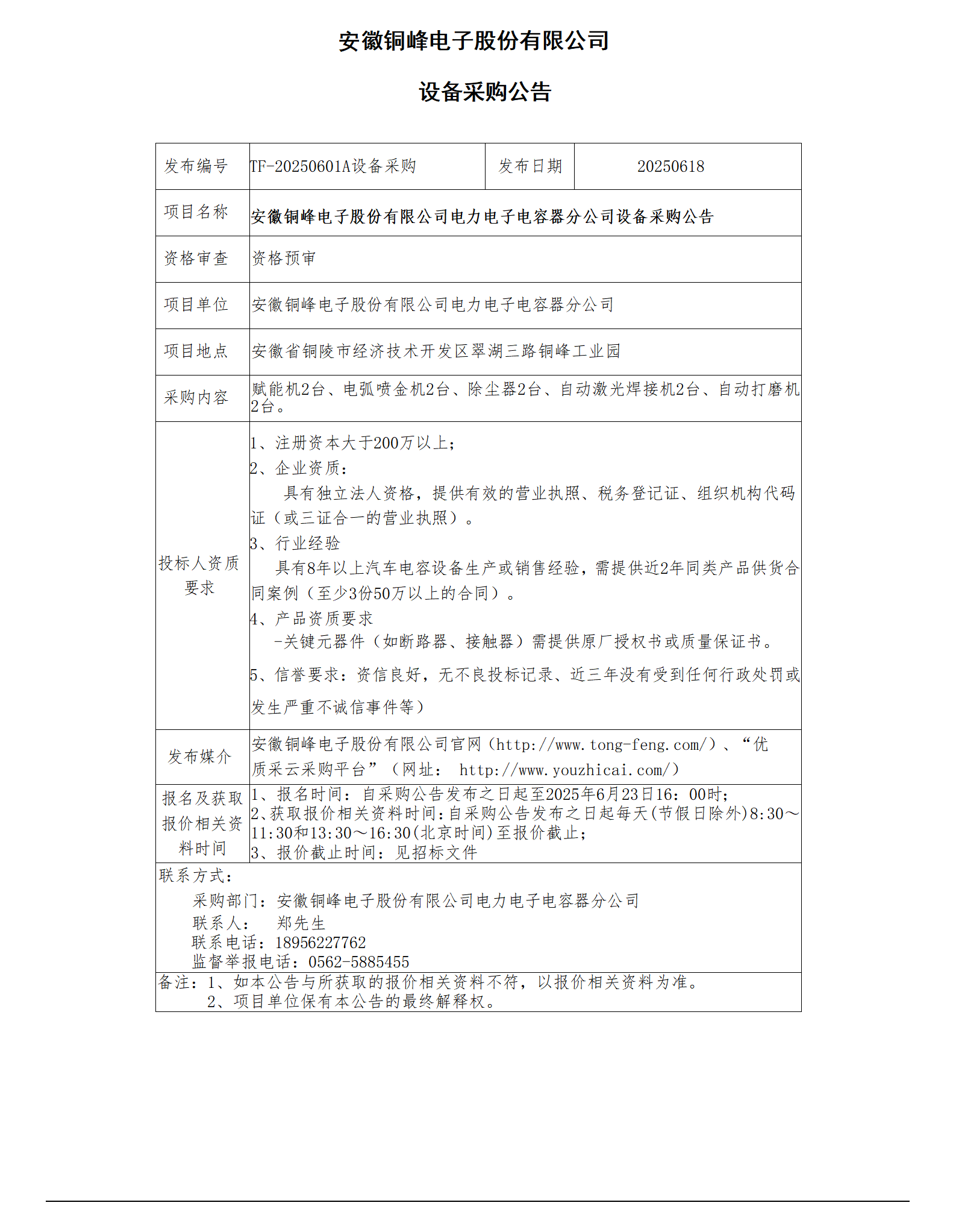 電力電子電容器分公司設(shè)備采購公告_01